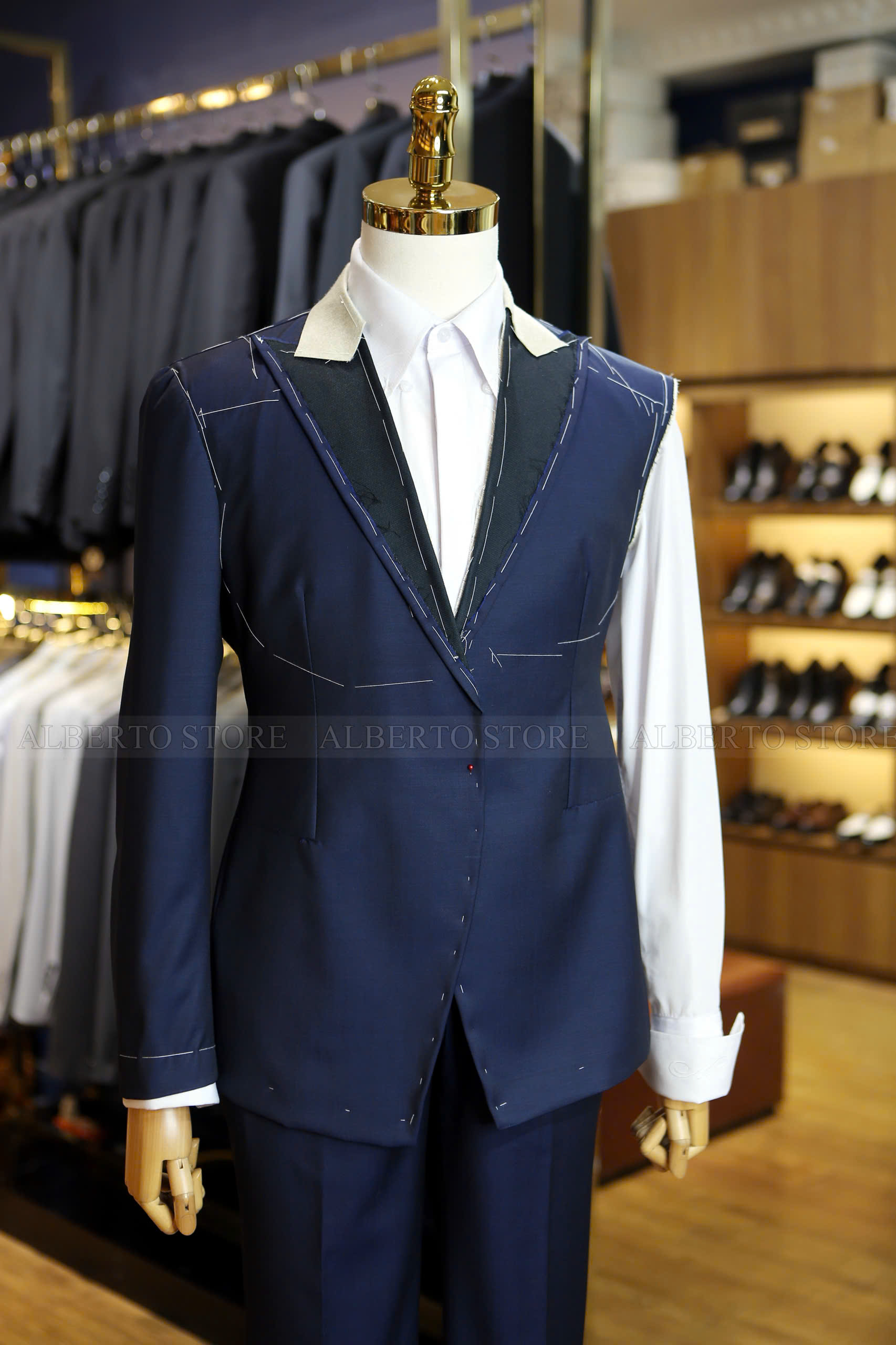 Vest may đo là kết quả của sự đầu tư thời gian, tinh thần và gu thẩm mỹ. Mỗi chiếc vest của Alberto đều cần ít nhất 1–2 lần thử, điều chỉnh, và được chăm chút bởi các thợ may tay nghề cao, để đảm bảo từng chi tiết đều đúng với dáng người, đúng chất lượng và đúng với kỳ vọng của bạn.